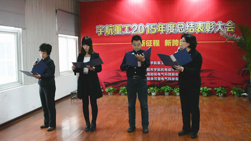 羊隨新風(fēng)辭舊歲,猴節正氣報新春。2015年1月30日,農歷的臘月二十一,宇航重工2015年年終總結暨表彰大會(huì )在宇航重工機電設計研究院三樓會(huì )議室盛大開(kāi)幕,宇航重工董事長(cháng)岳新立,攜公司高層、嘉賓及員工歡聚一堂,共敘未來(lái),共迎佳節。