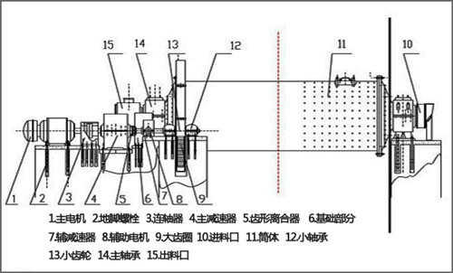 進(jìn)料裝置采用斜進(jìn)風(fēng)的百葉窗式結構,增強了磨機的熱交換能力,可以有效地防止磨機進(jìn)口的堵料現象。優(yōu)化支撐系統,改善潤滑結構,減小系統阻力。