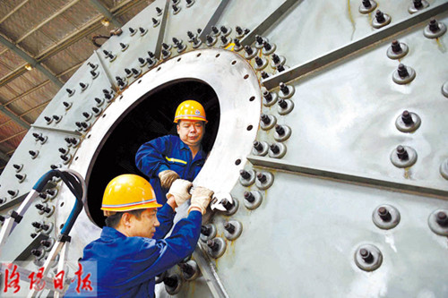 昨日,在位于市先進(jìn)制造業(yè)集聚區的洛陽(yáng)宇航重工科技股份有限公司里,工人們正加緊組裝出口馬來(lái)西亞的氧化鋁結殼塊智能粉磨關(guān)鍵設備。該類(lèi)型智能粉磨設備以其生產(chǎn)效率高、無(wú)粉塵擴散的突出環(huán)保性能備受市場(chǎng)青睞。