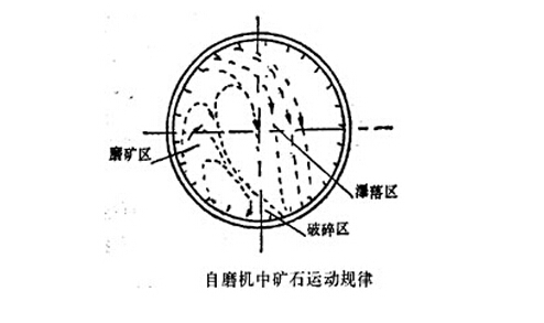 自磨機又稱(chēng)無(wú)介質(zhì)磨礦機,其工作原理與球磨機基本相同,不同的是它的筒體直徑更大,不用球或任何其他粉磨介質(zhì),而是利用筒體內被粉碎物料本身作為介質(zhì),在筒體內連續不斷地沖擊和相互磨剝以達到粉磨的目的。自磨機可以將來(lái)自采場(chǎng)的原礦或經(jīng)過(guò)粗碎的礦石等直接給入磨機。